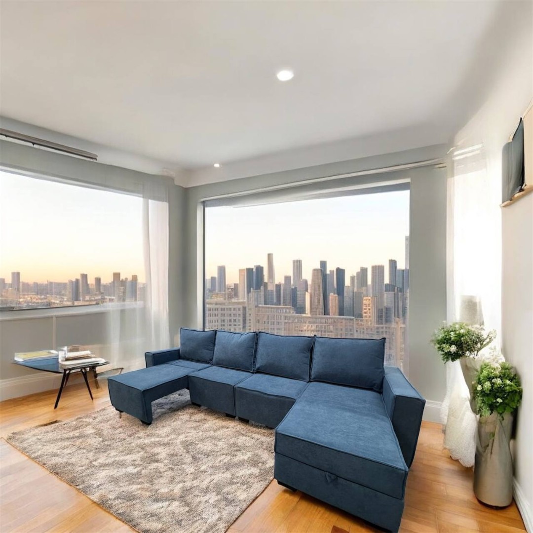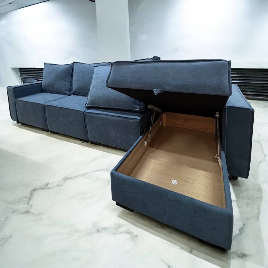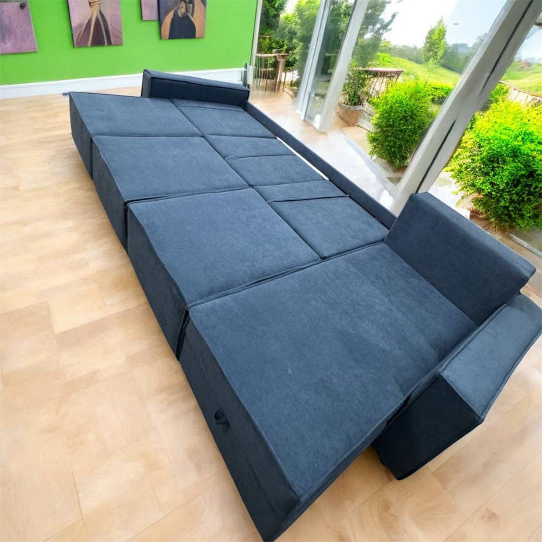 Диван с постоянным углом, который универсален. Три сиденья раскладываются независимо друг от друга.